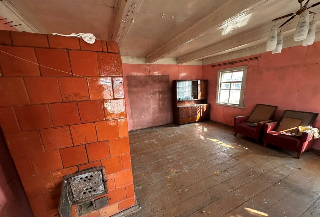 Medinis 54 kv. m namas turi du kambarius, šildomas krosnimi, papildomai yra atskira krosnis maisto gaminimui.